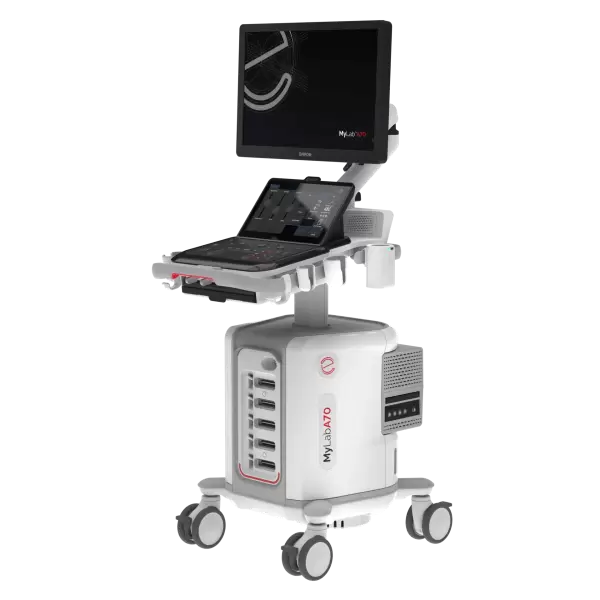 Agilitatea este capacitatea de a se mișca rapid și ușor. Având în vedere acest lucru, prezentăm MyLab™A70, un sistem cu ultrasunete care stabilește standardul prin furnizarea de imagini de înaltă calitate pentru îngrijirea avansată a pacientului, adaptându-se în același timp la orice cadru clinic. Sistemul nostru avansat de ultrasunete este proiectat pentru ușurință în utilizare. Cu o interfață intuitivă și un flux de lucru fluid, acesta își propune să vă sporească confortul în timpul scanărilor și să vă sporească încrederea în diagnostice. Instrumentele integrate bazate pe inteligență artificială acționează ca un copilot în rutina ta zilnică, ajutându-te să te concentrezi pe ceea ce contează cu adevărat: sănătatea pacienților tăi.