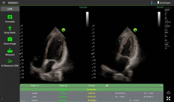 Stadializați cu ușurință insuficiența cardiacă cu calculul automat EF alimentat de AI pentru urmărirea clinică și planuri.